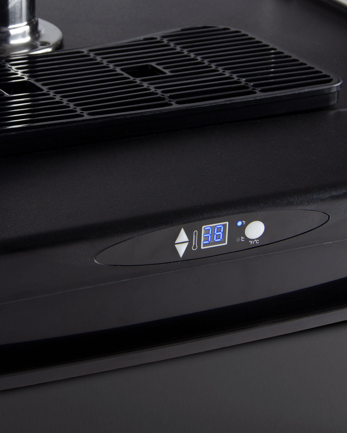 This kombucharator is freestanding with an all-black cabinet and reversible field door.