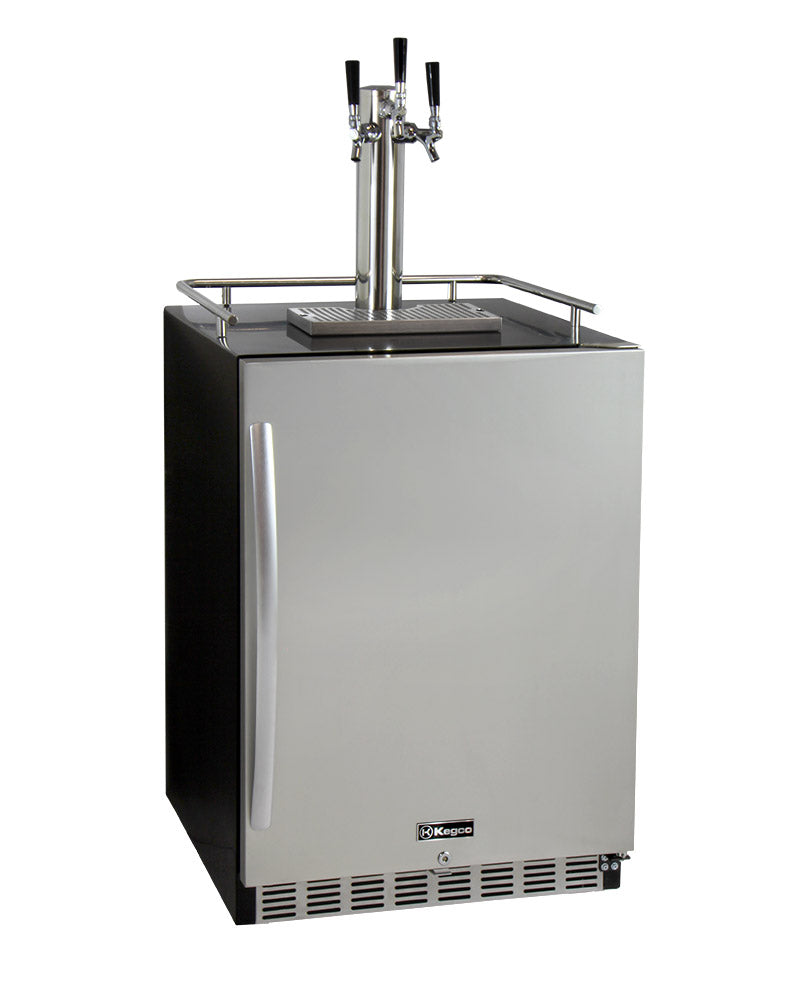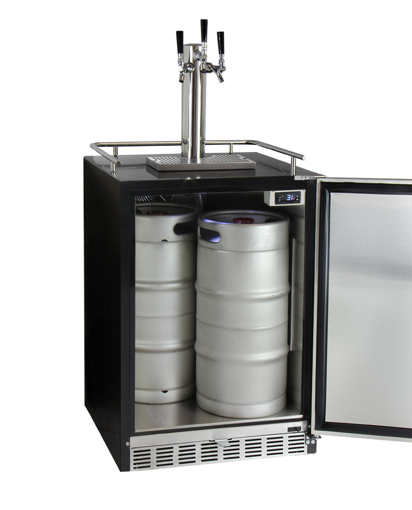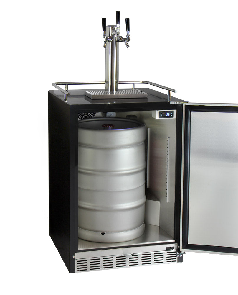 24" Wide Kombucha Triple Tap Stainless Steel Commercial Built-in Right Hinge Kegerator