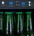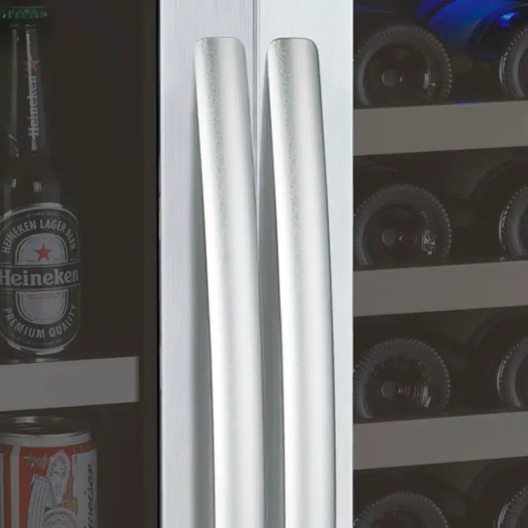 - Digital control panels allow you to precisely set the temperature between 39-64°F in the beverage zone, 41-61°F in the upper wine zone, and 45-64°F in the lower wine zone
