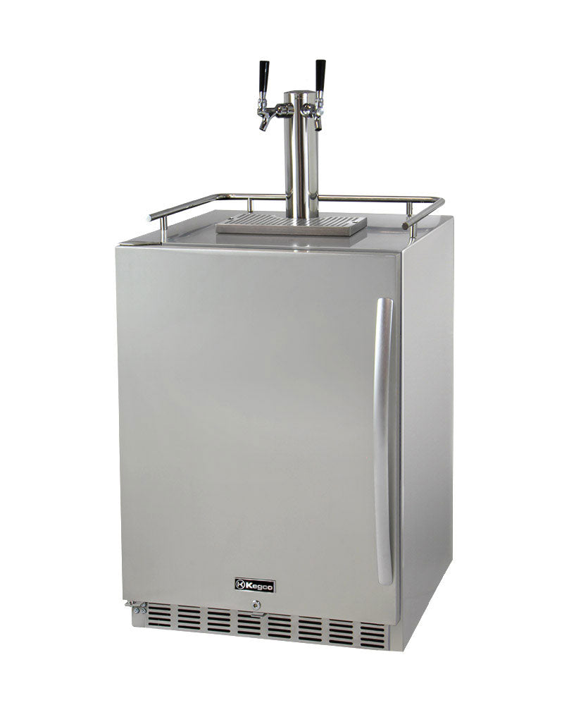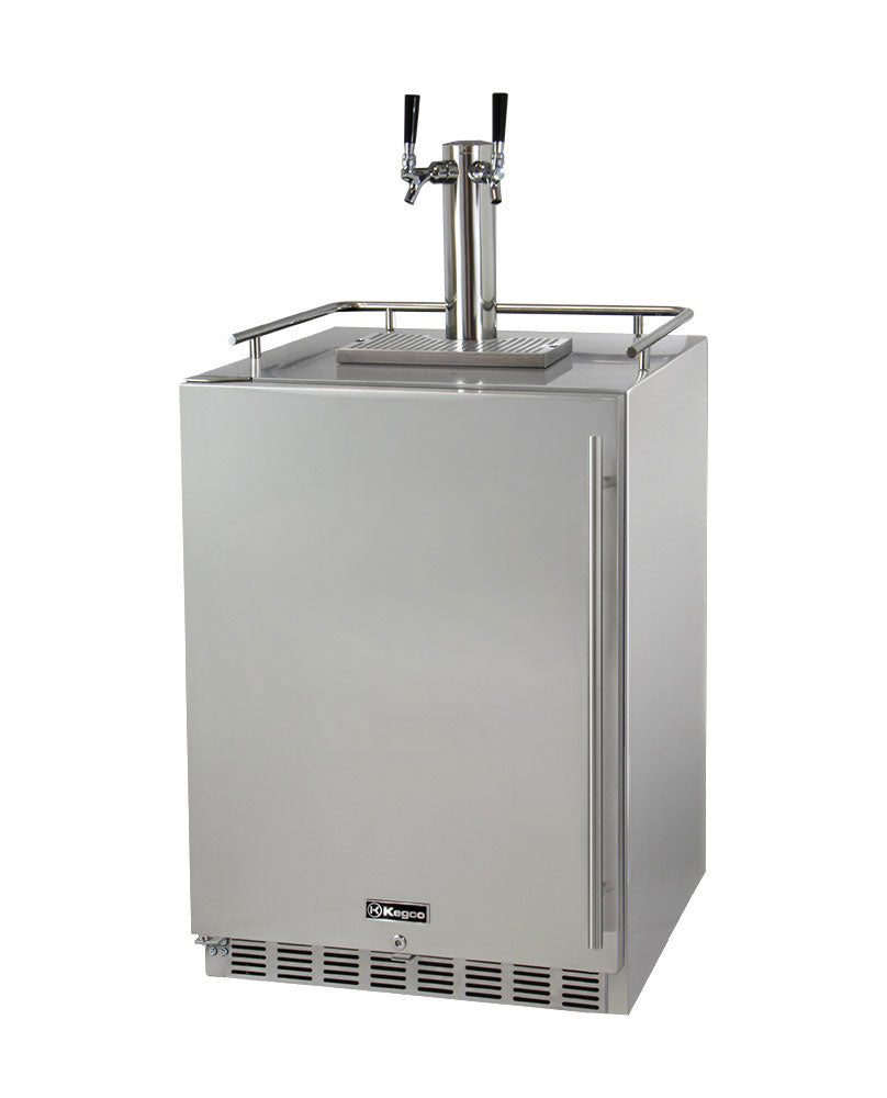 - Kegco HK38SSU-L-2 Outdoor Left Hinge Kegerator can be built in undercounter to provide a seamless look to your backyard BBQ island or outdoor kitchen