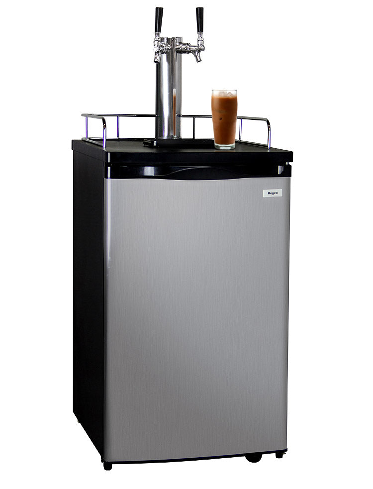Introducing the all new Kegco ICK19S-2 Dual Faucet Javarator Cold-Brew Coffee Dispenser. Store, refrigerate and dispense two types of coffee at once, making it even more convenient - and more fun! - to enjoy your favorite chilled beverage. This iced coffee dispenser has stainless steel fittings and a stainless steel faucet to ensure a sanitary environment for your kegged coffee, and it sports a stainless steel door that will look great in your home. It includes all the parts necessary for dispensing two kegs of cold brewed coffee at once so you can experiment with different flavors and compare! Comes with a Kegco Exclusive tower that measures 14" tall, giving you an extra 2" of space over standard draft beer towers to allow you to easily fill tall growlers and pint glasses.