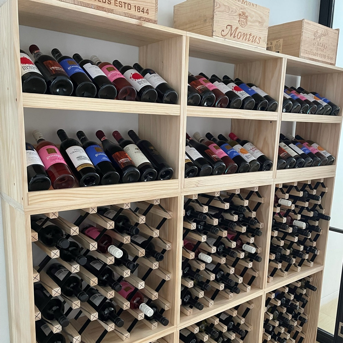 Dimensions: The measurements of the fully assembled wine cube are 23.62”W x 11.81"D x 123.62"H (600W x 300D x 600H mm)