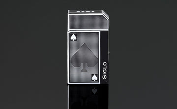 In clean & solid lines, the SIGLO Spade Lighter lights your cigar with style with its blue jet flame. Comes with flame control, gas window & a cigar puncher, this lighter is all that you want in a lighter. Printed with an ace of Spade and lacquered over for protection against scratches, the SIGLO Spade lighter is available in gold & chrome polish finishing.