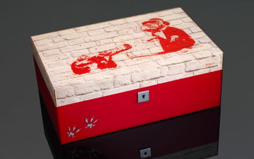 The Boss (big rat) and his gang ( two small rats with cigars) were painted on a brick wall mimicking Graffiti art. Piano lacquer was applied as other SIGLO humidors to give the glossy finish. Each comes with a digital hygrometer and a humidifier.