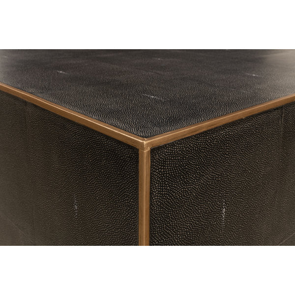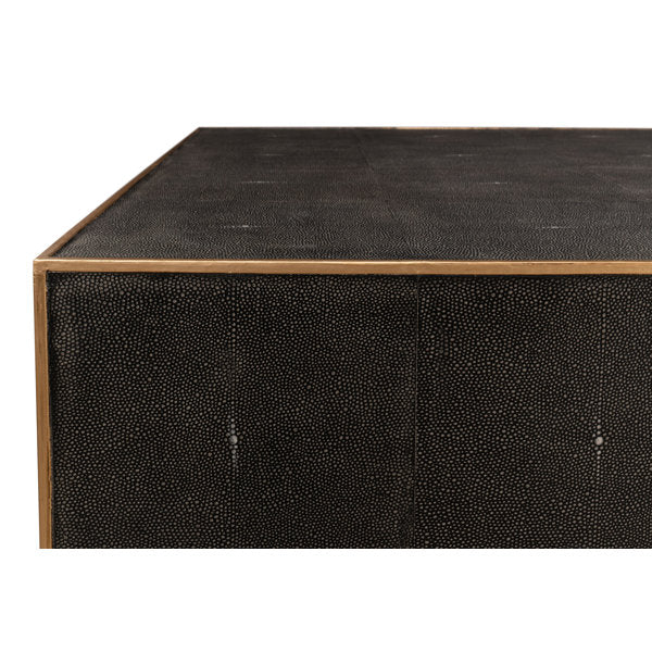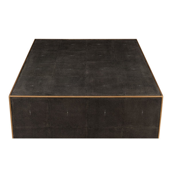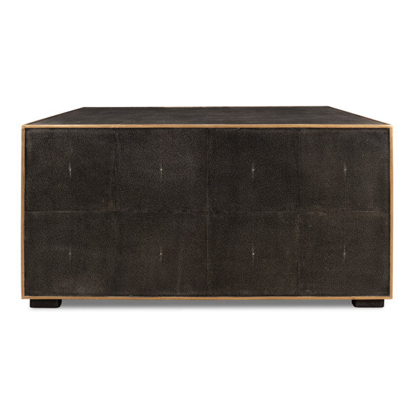 As an option for the perfect coffee table, we offer this 36-inch embossed leather piece that also sports gold leather trim. The feet are almost invisible but the appeal of our midnight coffee table is in plain sight