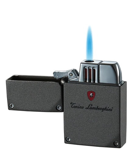 For discerning gentlemen, the Tonino Lamborghini Duro Torch flame lighter is a statement accessory. This all metal lighter features a sleek metallic gray finish and a powerful torch flame to light cigars, cigarettes, and many other cigar accessories.