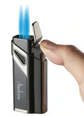This high quality cigar lighter features three powerful butane torches, clustered together in order to form a single broad flame for easy cigar lighting every time. This model even features a built in cigar punch so you can light up wherever you go!