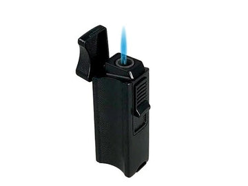 This Visol single jet lighter features a full cigar rest, cigar punch, and butane viewing window. Engraving is available on the back of the lighter.