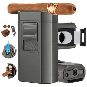 Premium cigar gifts for discerning men : Presenting the perfect package, our high-quality cigar lighter with built-in cigar cutter and double punch is an exceptional choice for cigar enthusiasts. Whether it's Father's Day, a birthday, anniversary, Christmas, Thanksgiving Day, or New Year's, this durable smoking accessory makes an ideal gift.