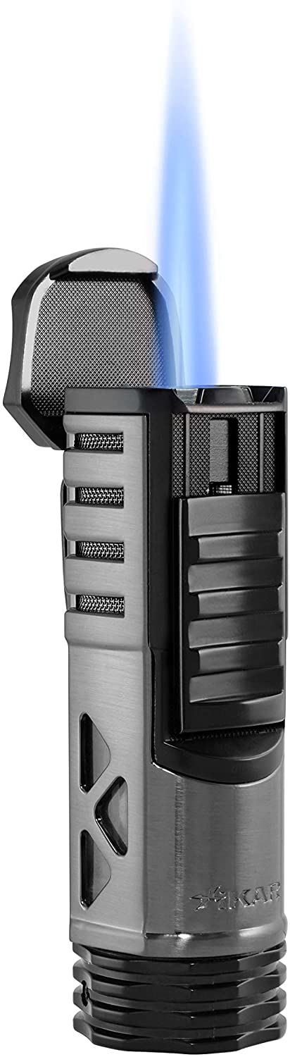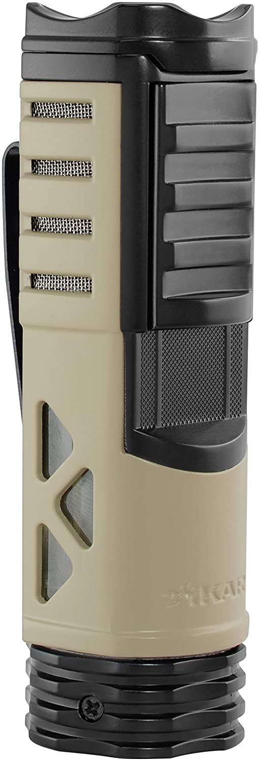 Tactical 1 uses a 10mm single jet, which is 25-50 percent larger than a standard single flame torch. To keep with the tactical look, it also features a removable clip. The crenelated cap is designed to function as a cigar rest while the lighter stands on its base.